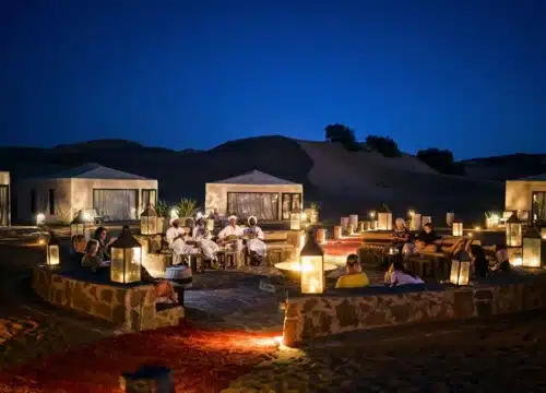 Oui. Vous dormirez dans un camp désert privé près de Merzouga avec un lit confortable, une salle de bain partagée ou privée selon l’option choisie, et un dîner traditionnel.
